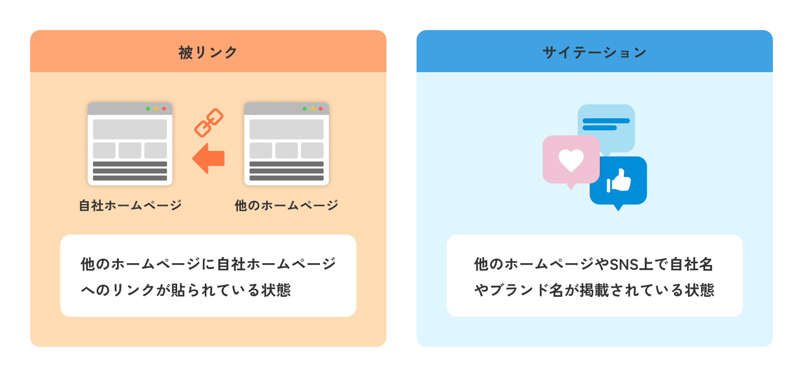 外部SEO対策には主に「被リンク獲得」と「サイテーション獲得」があり、この章ではこの2つの方法について詳しく解説します。
