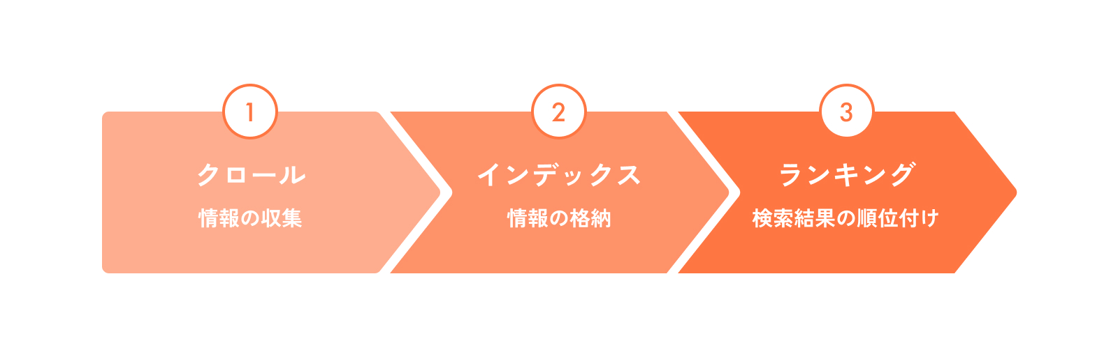 Googleの検索エンジンは、大きく分けて「クロール」「インデックス」「ランキング」という3つのステップで動いています。
