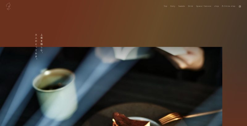 全体的にクオリティの高い写真や動画を用いていて、足を運ばなくてもお店の雰囲気やメニューの魅力が伝わってきます。写真の配置も特徴的で、alléeのホームページは写真が大きく数が多いのですが写真を重ねることでデザイン性や余白が生まれスッキリとしたオシャレなデザインになっています。背景のグラデーションやテキストのサイズやウェイトも、アンティークな雰囲気やクラシック感が出る要素の一つと言えるでしょう。