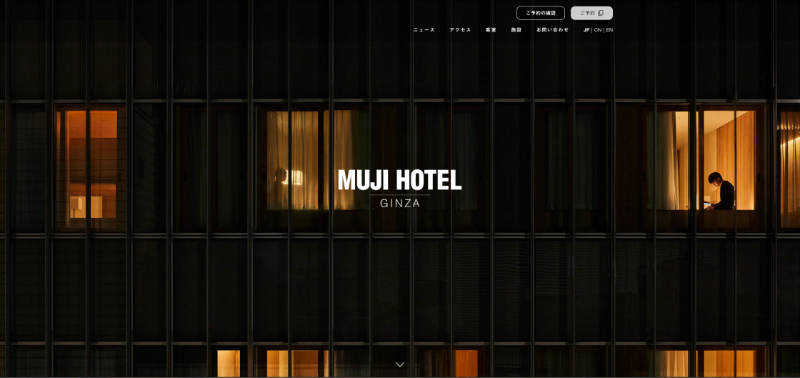 「MUJI HOTEL GINZA」は、東京・銀座にある無印良品の思想を空間として体験できるライフスタイルホテルです。ブランドの世界観をそのまま反映した内装が特徴で、ホームページのデザインも装飾を抑えたシンプルな構成になっています。余白を活かしたレイアウトや落ち着いた配色、写真のトーンを統一することで、ホテルの雰囲気が直感的に伝わる設計になっている点も特徴です。コンセプトとデザインの方向性を一致させることでブランド価値を表現している好例といえるでしょう。