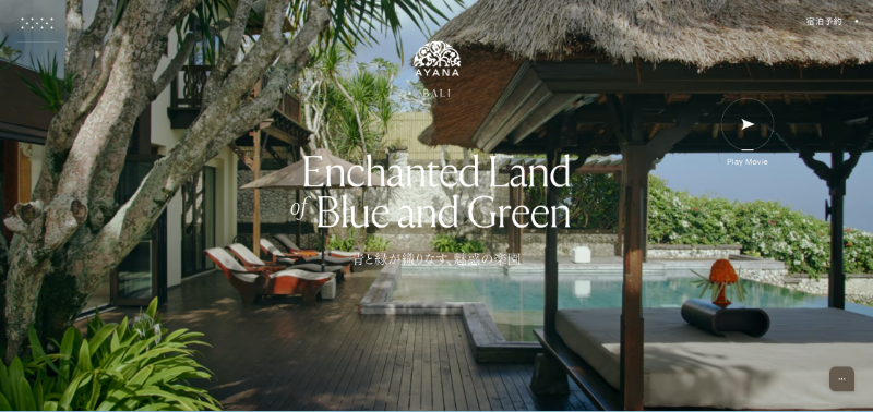 メインビジュアルにフルスクリーンのムービーを起用しているのが印象的で、ロケーションや滞在中にどのような体験ができるのかを直感的に伝える構成になっています。