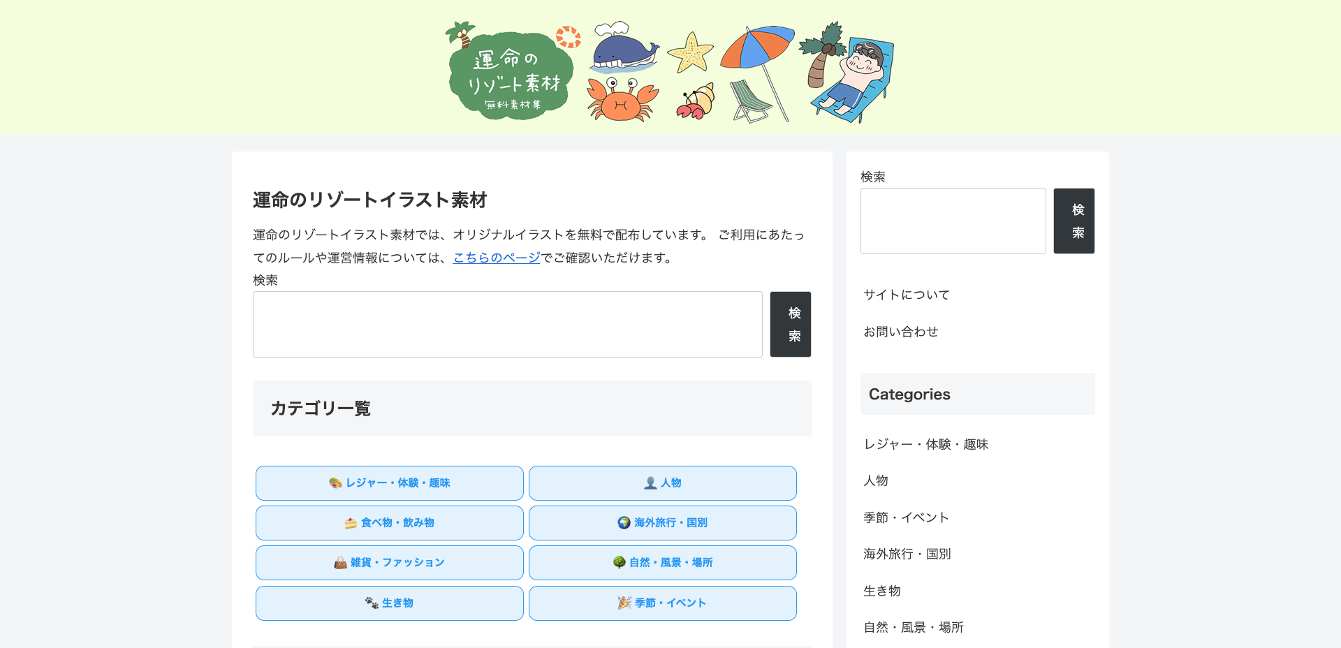 リゾート地や観光地の情景を想起させる、南国風のイラスト素材を中心に配布しているフリー素材サイトです。商用利用可・クレジット表記不要・会員登録不要で、誰でも手軽にご利用いただけます。現在はPNG形式で100点以上のイラストを公開しています。